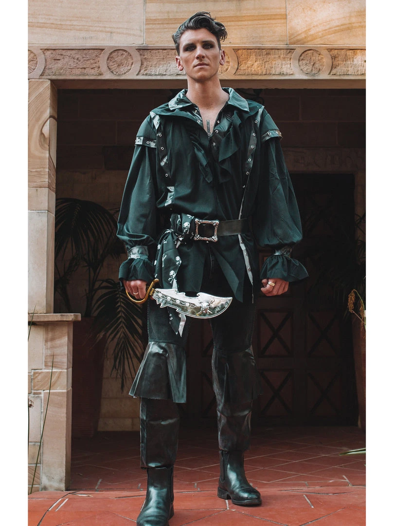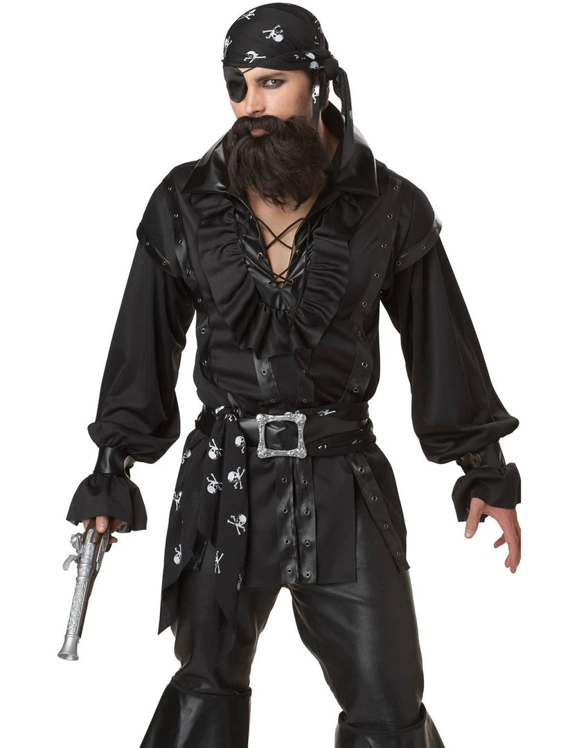 Get rid of that scurvy dog named Butch, the rest of your scallywag sea crew, and style yourself in this costume with the makeup of a heavy metal fashion victim, an eye patch and cutlass sword for the ultimate sartorial pirate look!