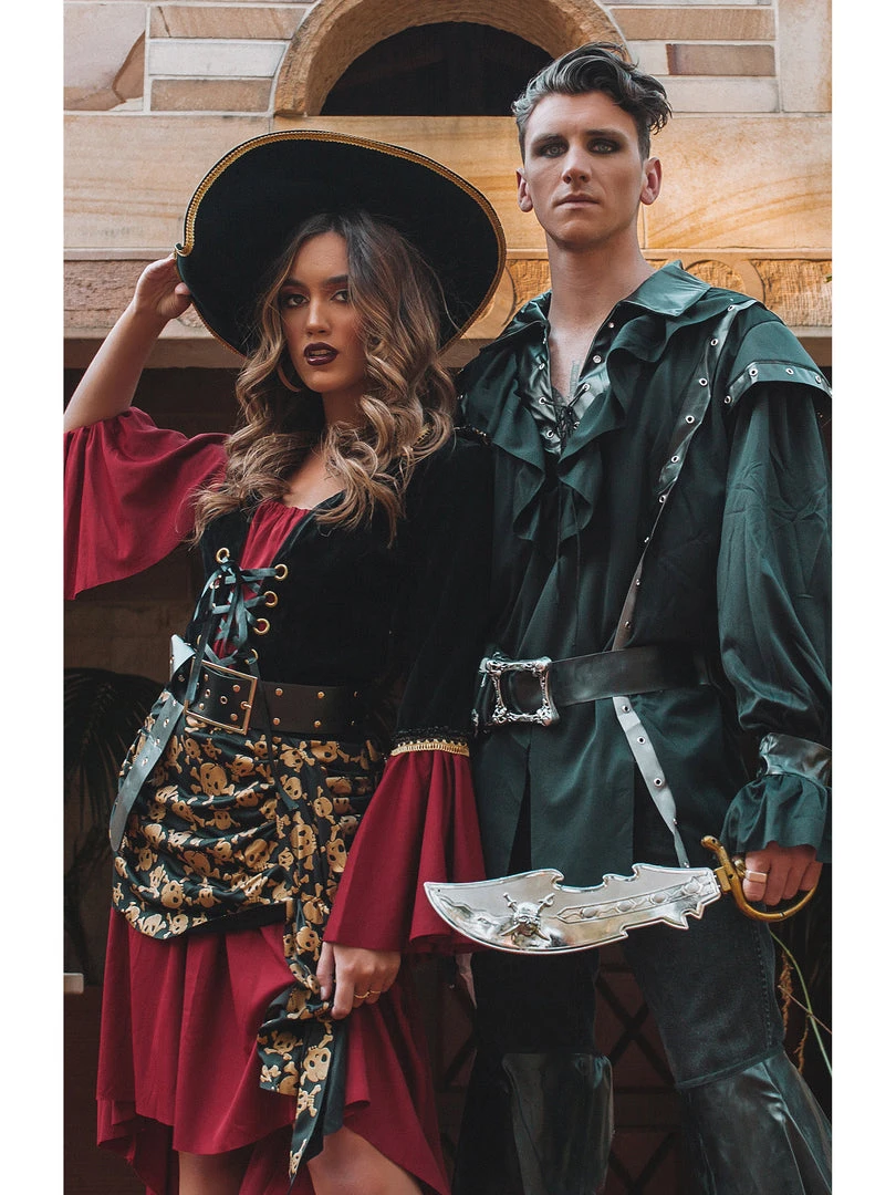 Style with our Unisex Pirate Hat for a Swashbuckling look! Or pair up with one of our Women’s Pirate Costumes for a Pirate Themed Couples Costume!
