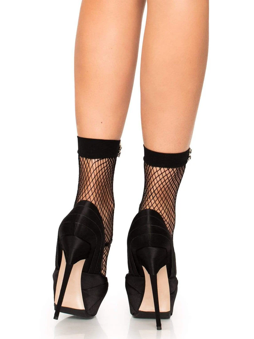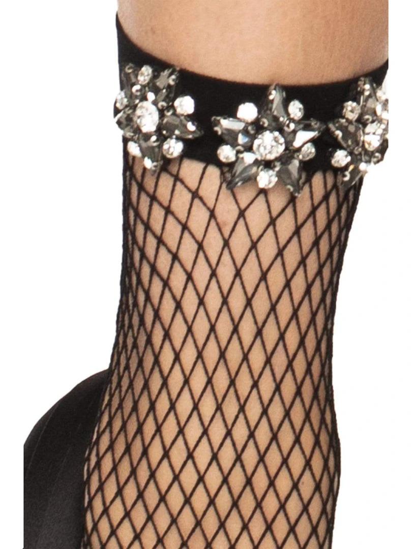 Add flirty flair to your footwear with these jeweled fishnet ankle socks by Leg Avenue!