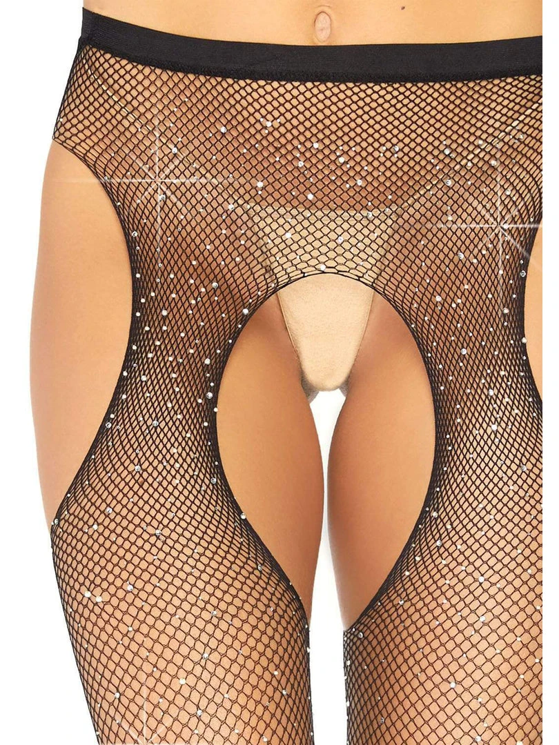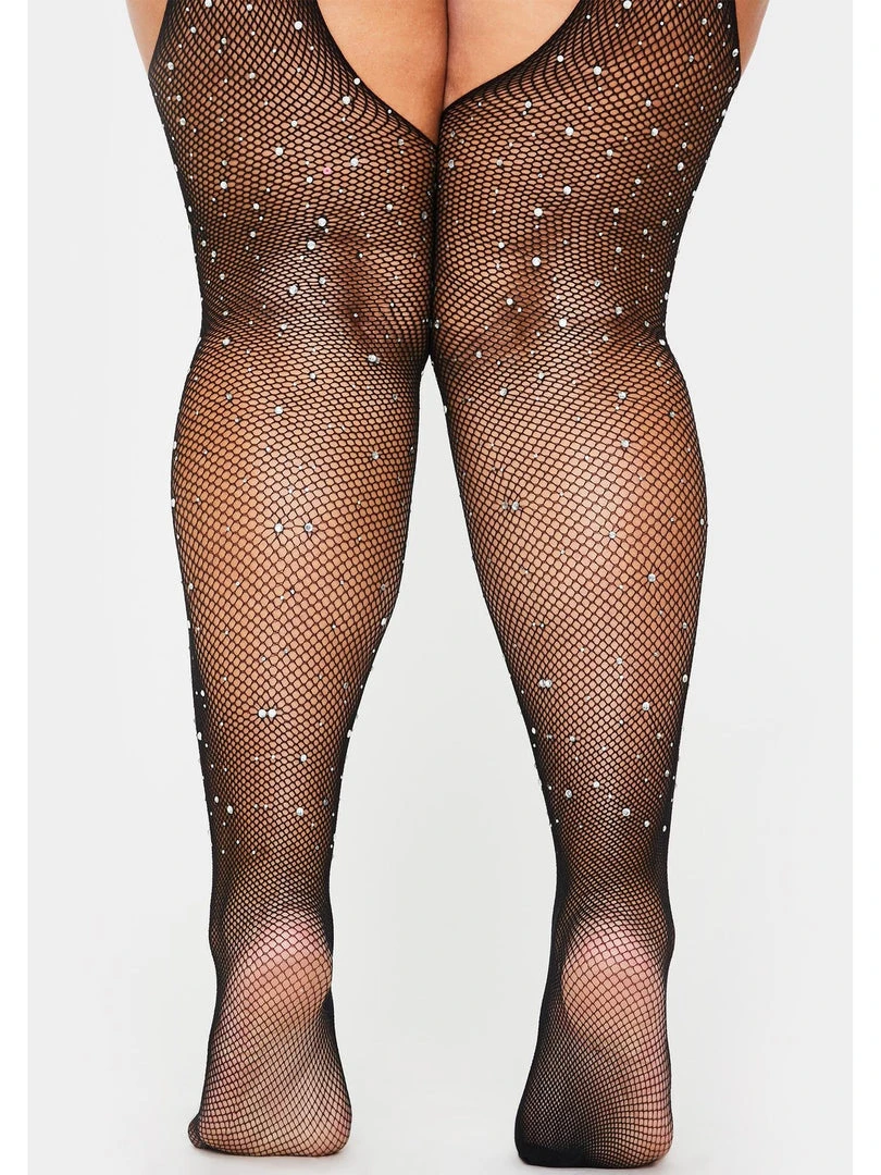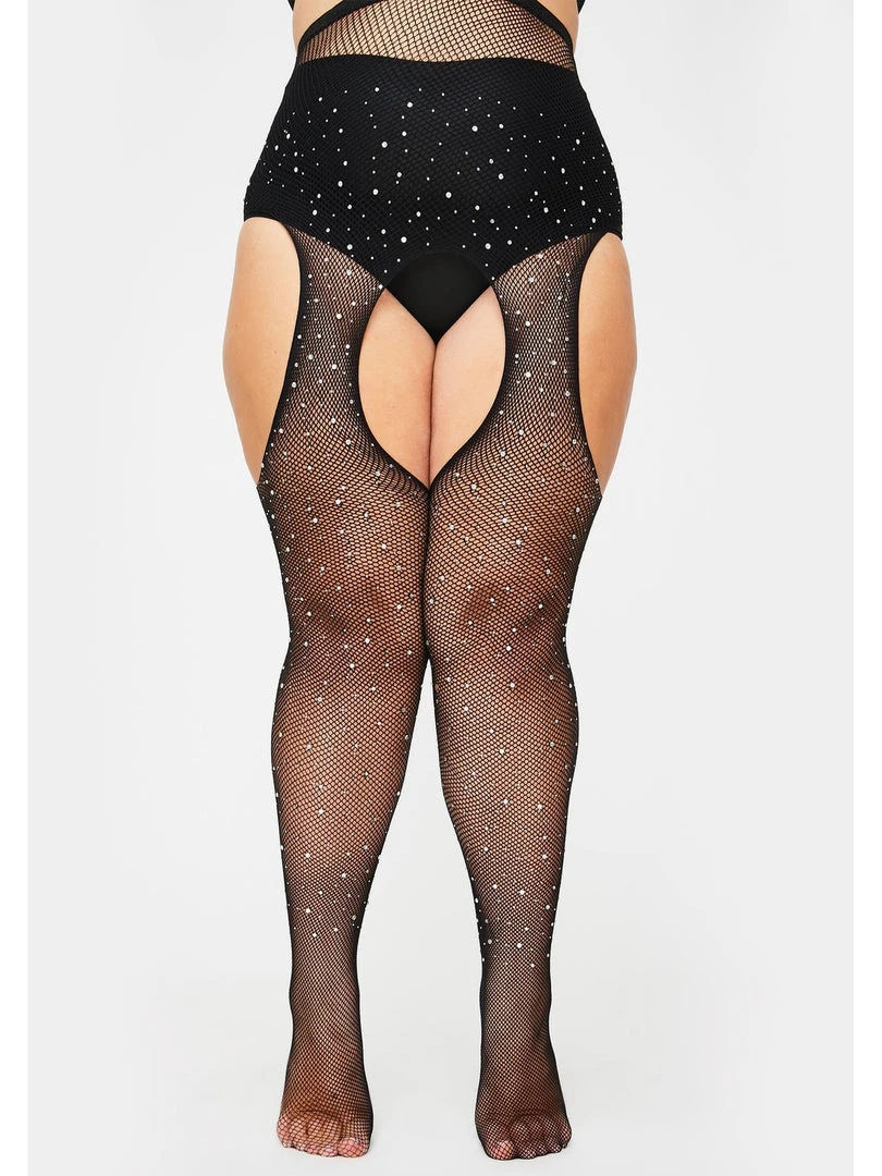 - Package includes: Plus Size Crystalized Fishnet Suspender Pantyhose