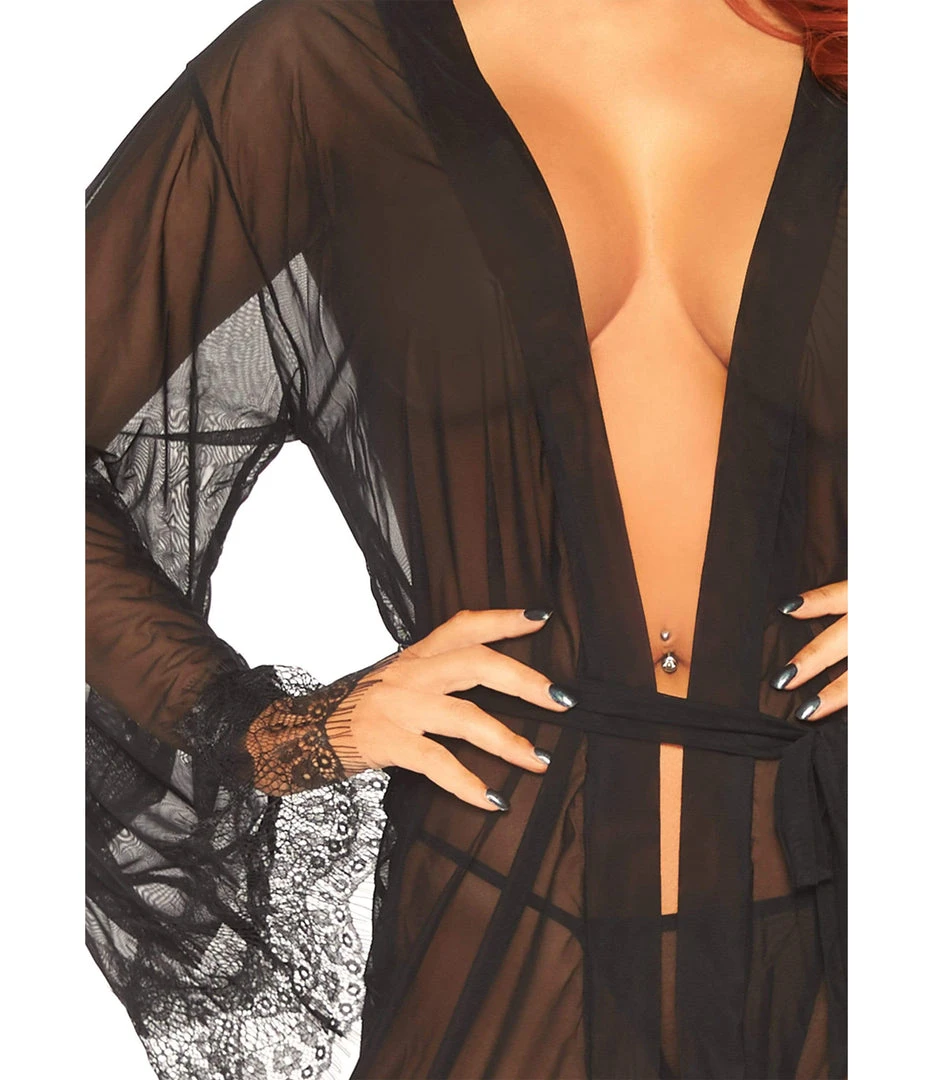 Leg Avenue Pretty Gift Wrapped Short Sheer Black Lace Robe Lingerie