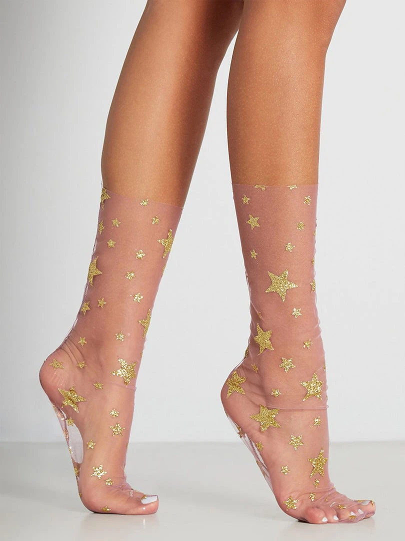 You will love the way these delicate tulle socks with shimmery glitter stars look paired with heels!